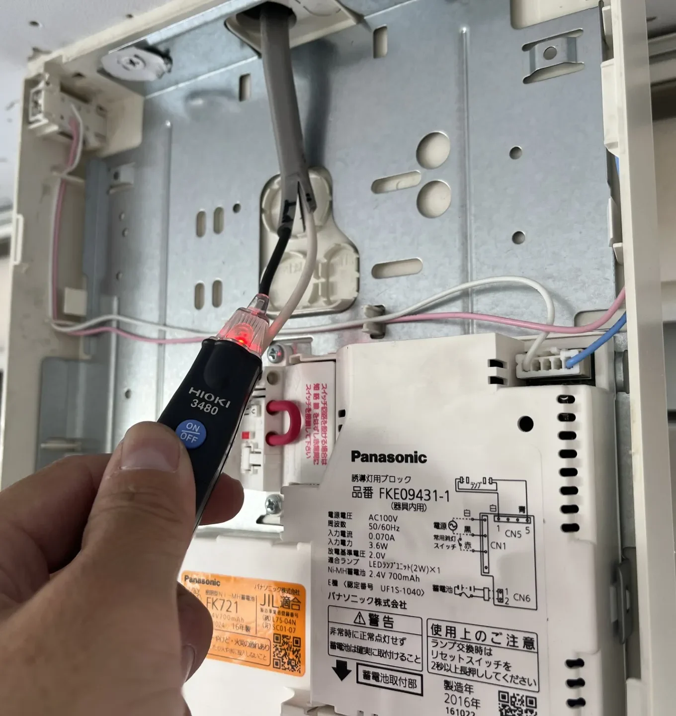 安全に配慮し、既存配線の確認後に新しい感知器を設置しました。