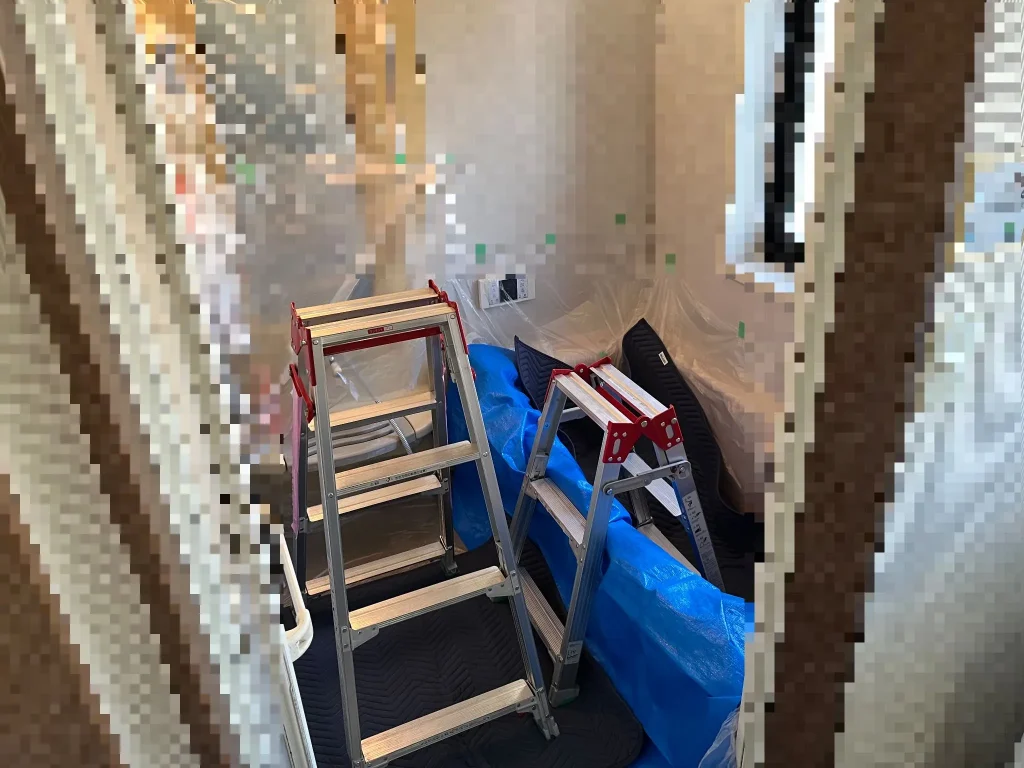 浴室という水回りのため、床や壁、設備に傷がつかないよう丁寧に養生して作業を進めています。