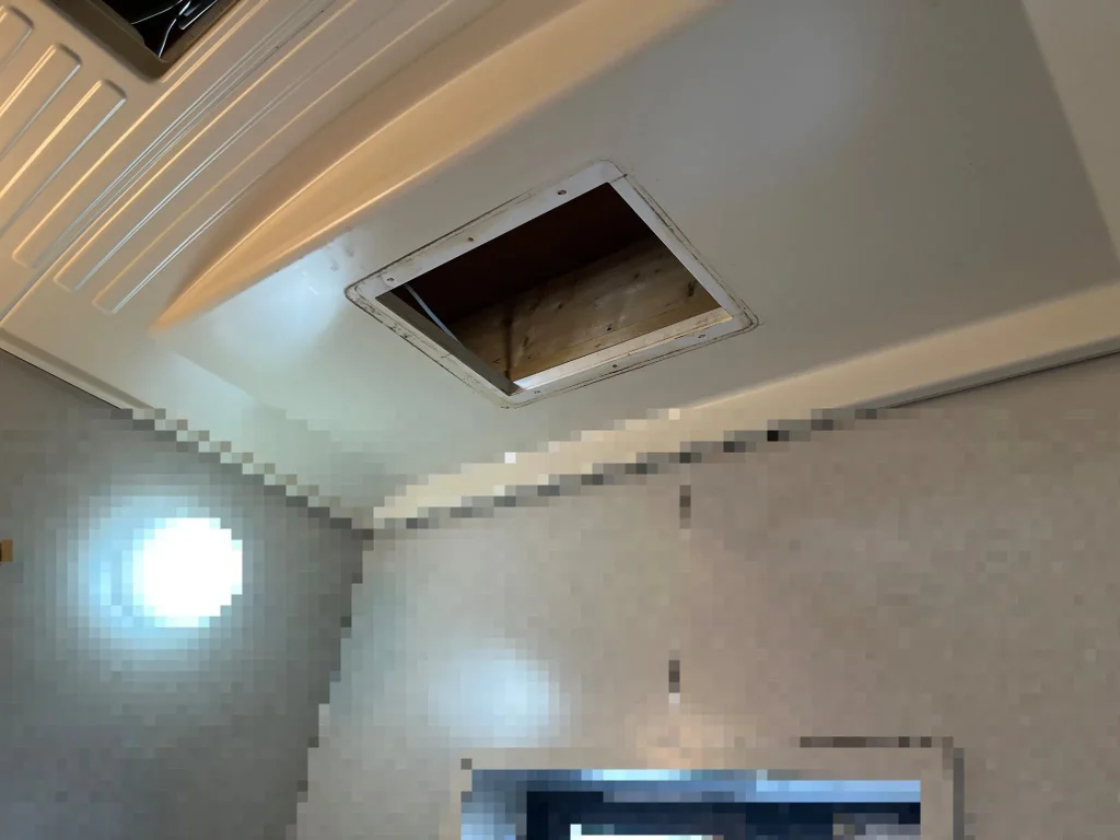 天井点検口周りを確認しながら、既存機器を慎重に取り外します。